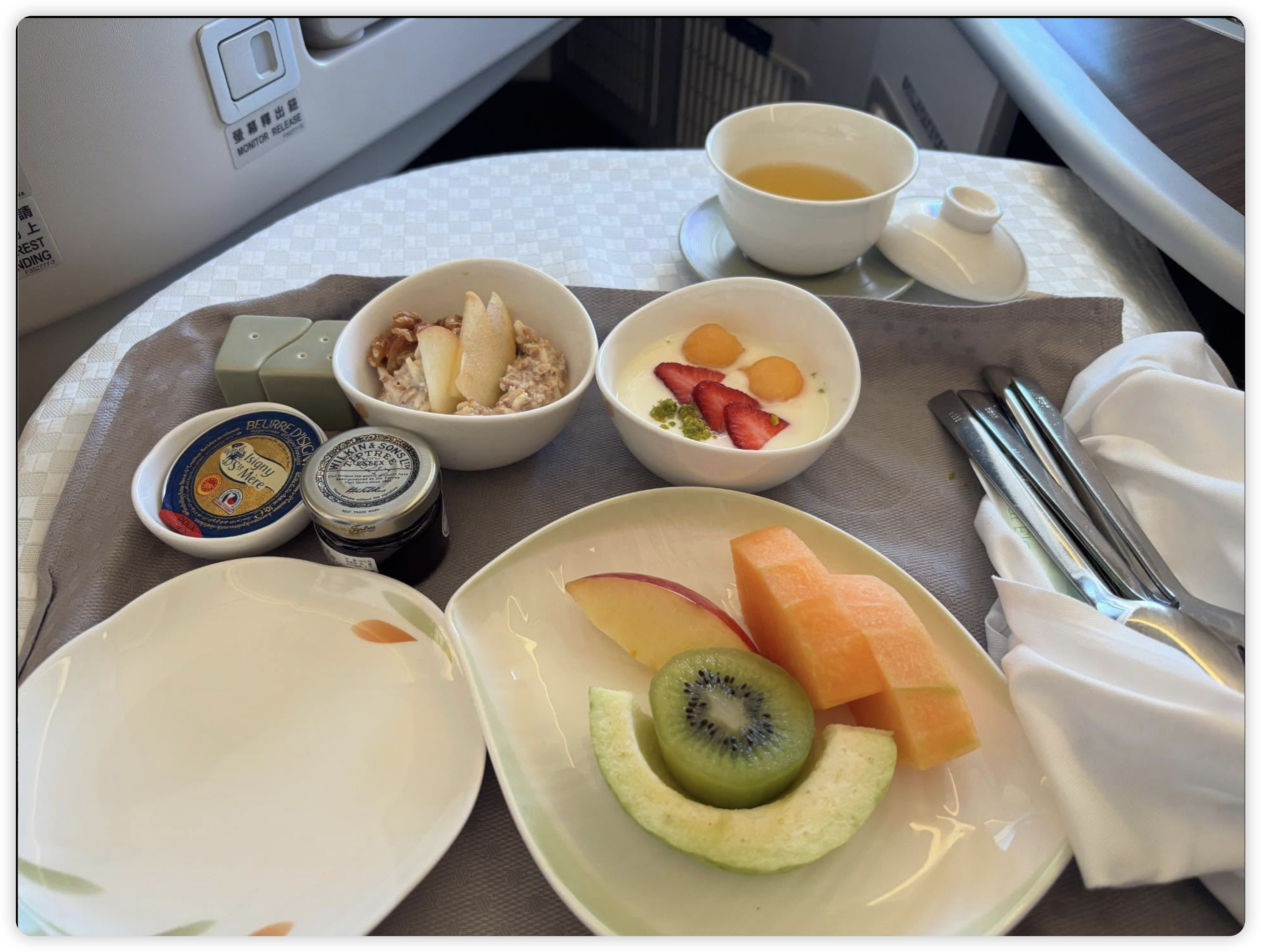 整體來說,這趟 BR225 既是商務艙體驗,也是早餐初體驗。長榮的細節或許不像新航那樣精緻到極致,但穩定、舒適、服務周到,依舊是一段愉快的空中旅程。下機時,我甚至還在想,如果不是用里程換,直接花錢買會不會太奢侈?或許是,但至少我知道,這樣的體驗值得被記錄。