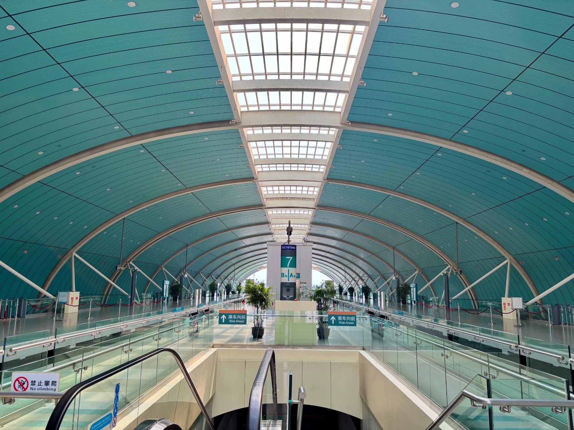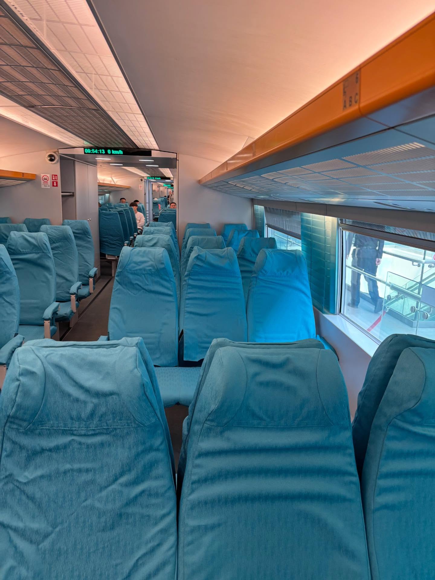 這次從上海市區前往浦東機場,我特地選擇了久聞其名的 磁浮列車(Maglev)。上車地點在龍陽路,整個車站寬敞又明亮,採光極佳,那種大片自然光灑進白色系的空間,讓人心情瞬間放鬆。車廂內部乾淨又安靜,速度快卻幾乎沒有明顯晃動,穩定到讓我一度懷疑是不是還沒開動(笑)。短短八分鐘抵達機場,這趟磁浮體驗堪稱完美。