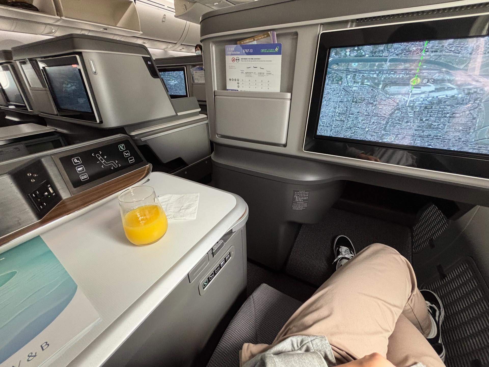 座位部分我坐在 7K,靠窗位置,腿部空間與視野都不錯。其實這款 Dreamliner 的座椅我已經在前幾次松山航線中體驗過,因此這次就不再贅述。不過有一個意外的亮點——飲料終於不是胡蘿蔔綜合汁了!這次換成了鮮榨鳳梨汁,味道超級好。它沒有一般鳳梨汁那種刺喉的酸勁,反而保留了香甜與一點自然纖維感。