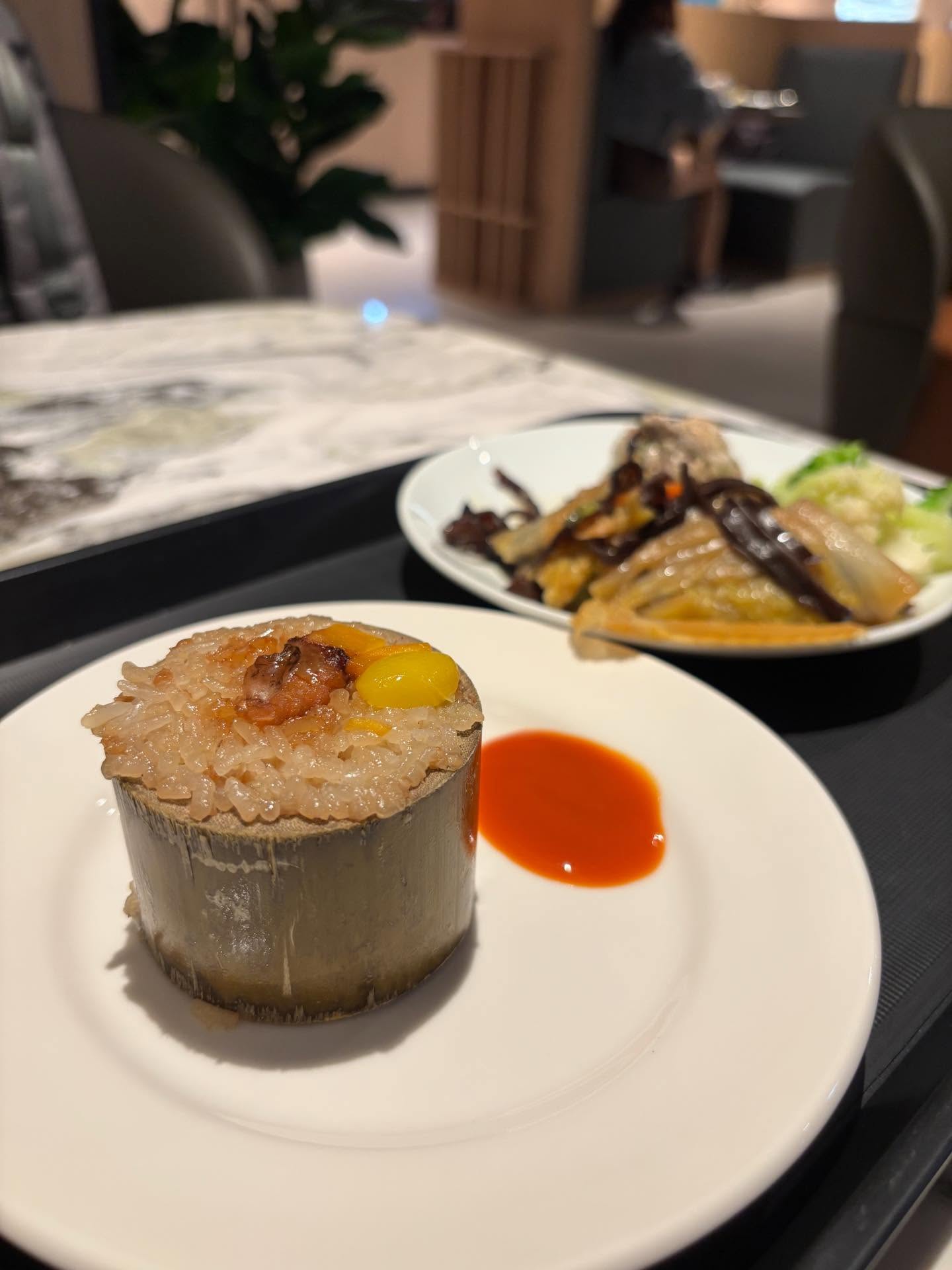在登機之前,我特地繞去看看剛開幕不久的 環宇貴賓室。這間貴賓室取代了以前那間由聯合航空合作經營的松山貴賓室,整體人流明顯少了許多,空間也顯得更明亮。最讓我驚喜的是餐食水準——比起舊貴賓室可說是大幅進步。熟食種類更多,味道也更細緻,其中那道竹筒飯雖然看起來超誘人,但實際上黏度驚人,幾乎快成年糕等級(笑),建議謹慎取用。