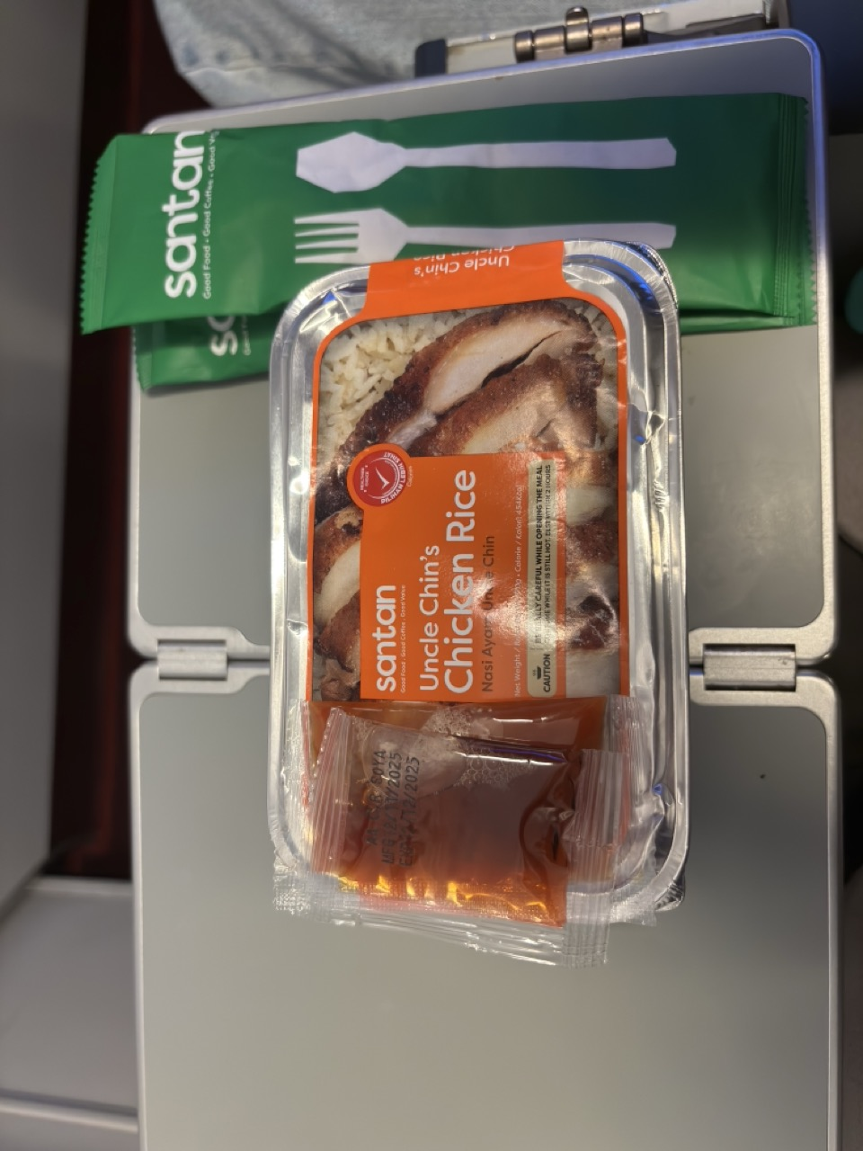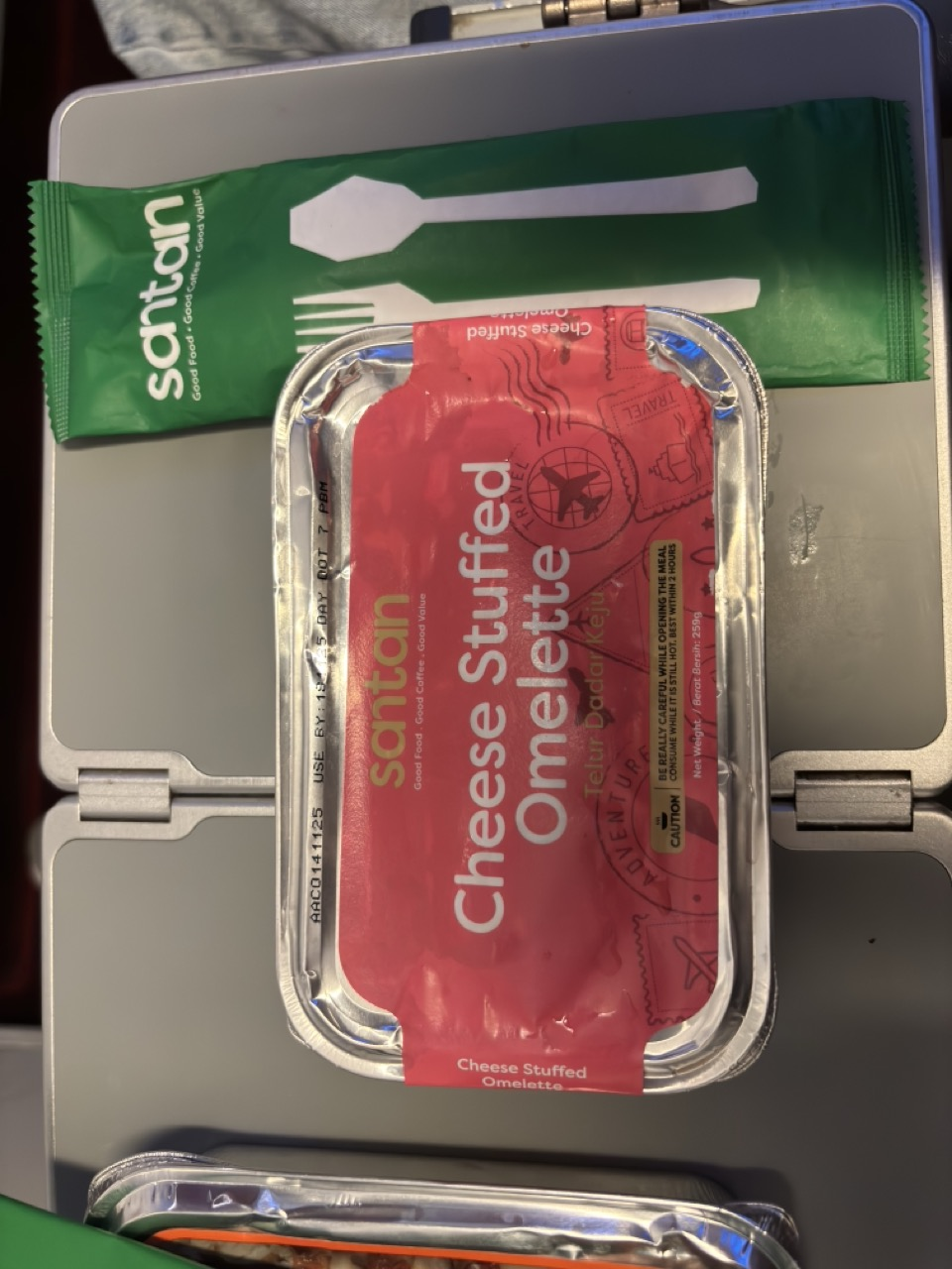 一直都很期待 AirAsia 的餐點,點了 Cheese Stuffed Omelette Meal 跟 Uncle Chin’s Chicken Rice,兩個都便宜又好吃,亞航餐真的每次都讓人有種「怎麼這麼強」的感覺。但可能前幾天玩太累,起飛沒多久吃完馬上睡死。剛好坐在 quiet zone,整個艙燈都調得比較暗,不會有人吵鬧,舒服到一度忘記自己還在天上飛。
